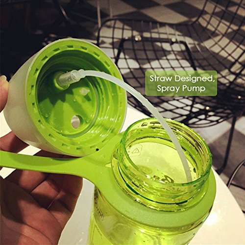 -. Feature : Made from PC and PP food-grade plastic BPA-Free material, brings no harm to your body. You can use it rest assured. / 400ML high capacity, good to bring you enough water supply for an excursion or daily home use. Enough to meet your normal daily hydration needs. / Easy operation. The water drinking hole and spray hole are separated. Just press the button and it will spray which makes drinking more fun. / Designed to meet a variety of outdoor sports, high intensity exercise, long-distance driving and other water needs. Impact and heat resistance, suitable for both warm and cold beverages. Built in carry loop for easy transport. / 2 in 1 water spray bottles. It not only solves your thirsty problem, but also help you to clean up your face, hands and other parts of body to cool yourself down.