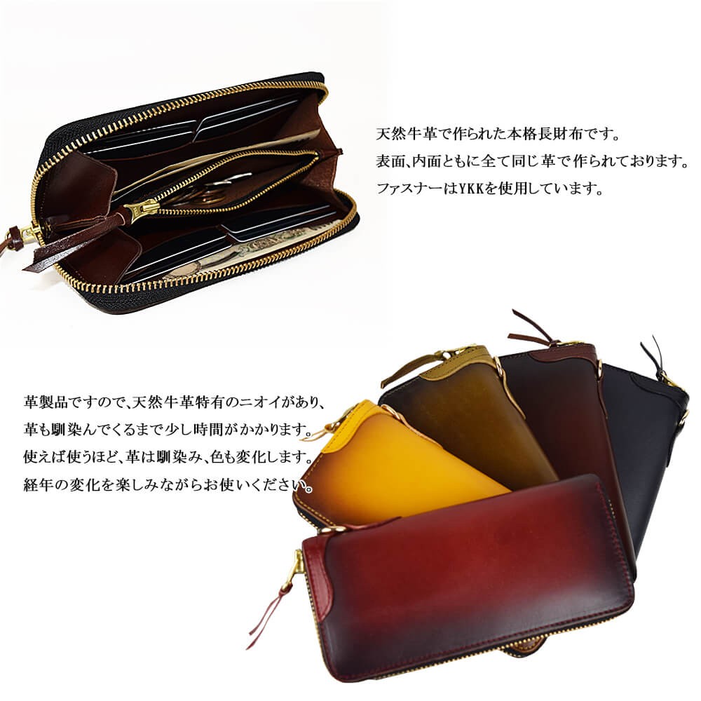 天然牛革で作られた本格長財布