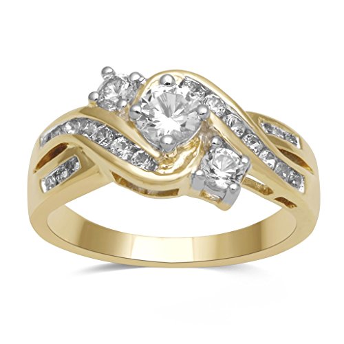-. Title : Jewelili 14KT Yellow Gold plated Sterling Silver 3 Stone Created White Sapphire And Accent Diamond Ring, Size 7