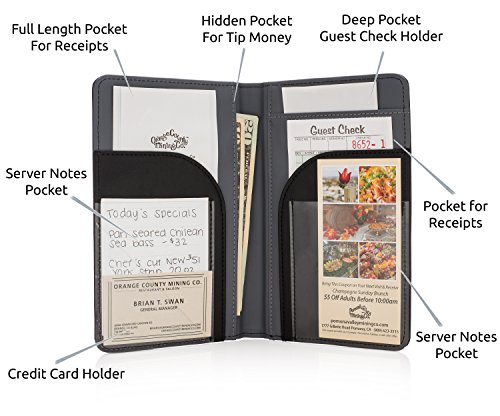 - KEEP YOUR TIP MONEY SECURE & SECRET - Losing or mixing up your tip money is a thing of the past - simply place it in your hidden compartment within the server book for safe keeping until the end of your shift. Safe and secure!