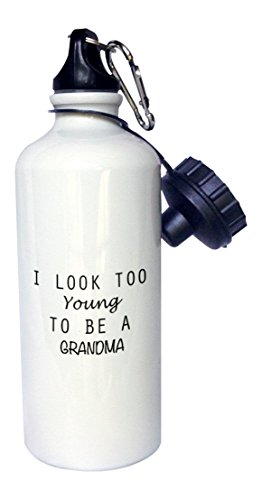 3dRose wb_222181_1 I Look Too Young to be a Grandma Sports Water Bottle, 21 oz, White