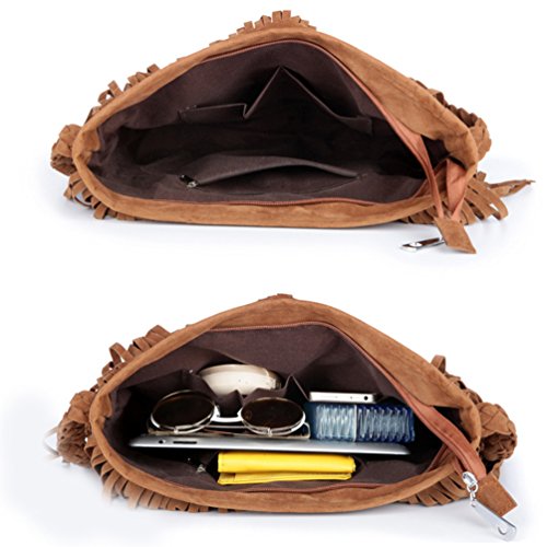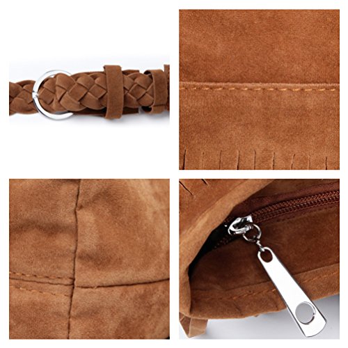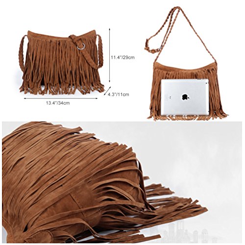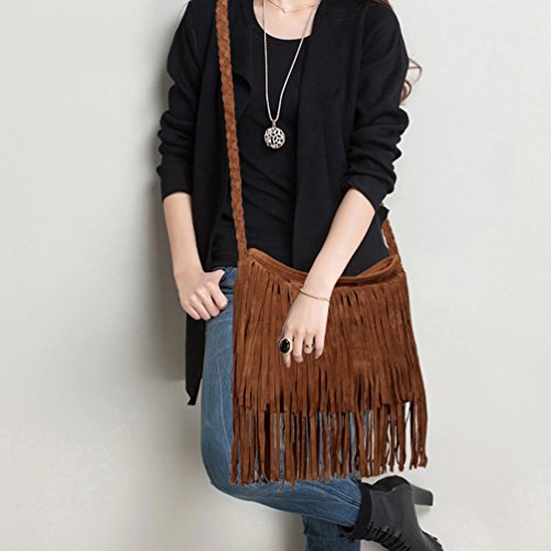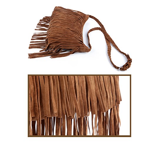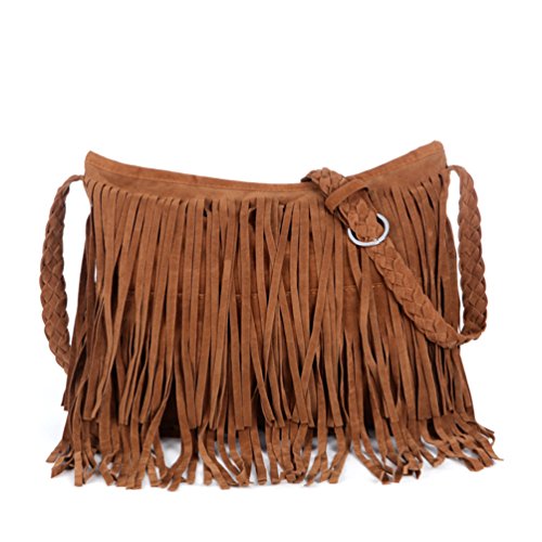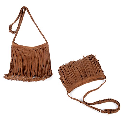 Vbiger Tassels Shoulder Bag Fringed PU Leather Handbag Simple Cross Body Bags for Women Braided Shoulder Strap