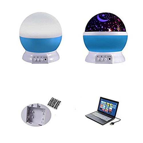 Blue Cute Night Light Lamp Star Projector Romantic LED Night light 360 Degree Rotation 4 LED Bulbs 9 Light Color Changing with USB Cable Christmas Gift for kids