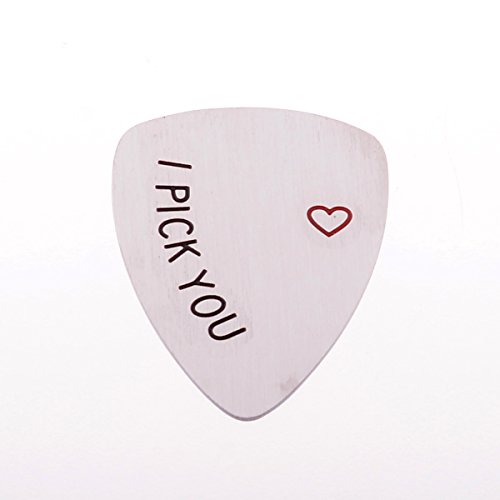 Material : 316L Stainless Steel; no distortion, no damp, no rust ;Bright, shiny, Highest Quality ,Won't change color or get dark. "I pick you" is hand stamps on this guitar pick. Let that special Man/Women know how much you love him/her, with this unique gift.