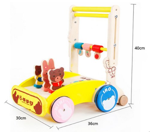 -. Feature : Updated version of the car behind added two pairs of training wheel, and at the bottom of the car add two speed adjustment screws , the unique design is very good to protect the safety of the home's floor and the baby. / This is the new children walkers, it adopts adjustable design,the height can adjust according to the baby's height.Walker has three cartoon characters, vivid and interesting. / Armrest adopt the rounded design, safe and not easy to scratch the baby. / The turn batten, prop up the armrest, and there is a small hole on the wood, use the attach screws to fixation, safe and reliable. / Walkers have four wheels, each wheel is equipped with antiskid rubber band, increase the friction with the ground, and prevent the speed too fast.