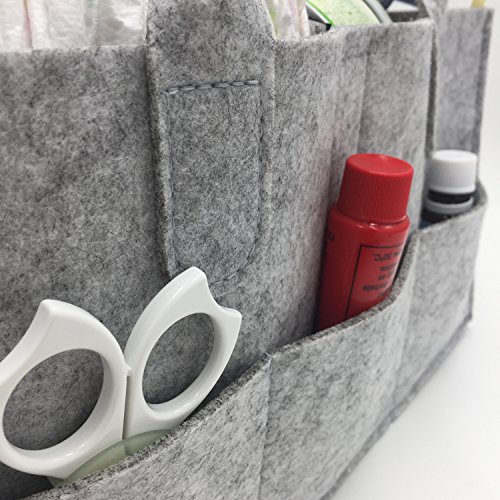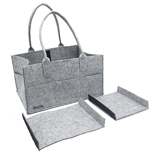 - MULTI-FUNCTIONAL NURSERY STORAGE KIT- The iNazoie diaper caddy fits lots of baby essentials (20 + diapers, wipes, diaper rash cream, changing pad, etc.), easy to store your breast pump and its accessories, use as a car organizer. It has ample storage for holding a thermal coffee cup, a book or ipad, toys, and a bunch of other little things. This kit also comes with a iNazoie small felt bag, can pick up a lot of small items such as coins, paper money, barrettes, hair bands, cosmetics, etc.