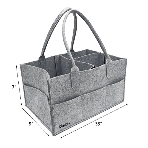 - HIGH-QUALITY MATERIALS - The iNazoie diaper caddy is 13 x 9 x 7", the small bag is 3.9 x 2.3 x 2.5". They're made of quality felt. It's very lightweight but yet sturdy.