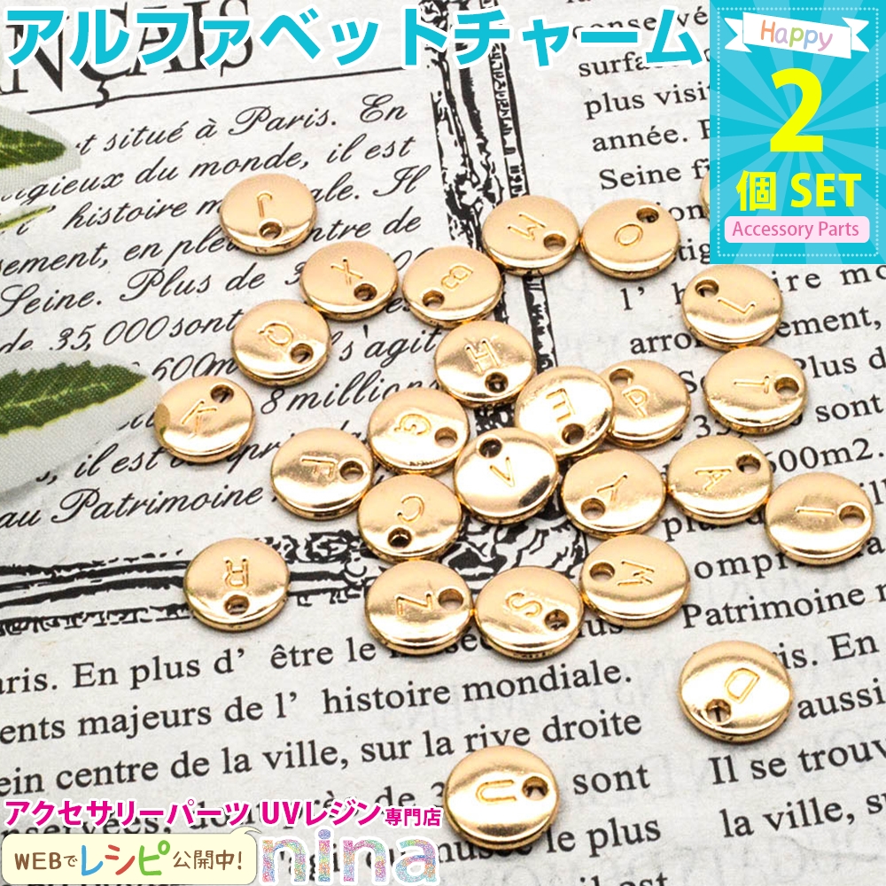 ■商品名:アルファベット 英字 イニシャル チャーム 丸 ゴールド Z 2個セット