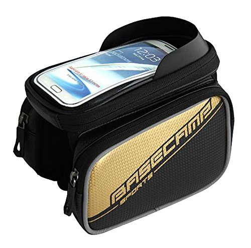 Allnice® 5.8" Waterproof Front Frame Bag Tube Pannier Saddle Bag Double Pouch for iPhone 6 iPhone 6 Plus 5S/ Galaxy S6/ S6 Edge/ S5/ S4/ S3/ LG G4/ G3 Nexus 5 and etc (Gold)
