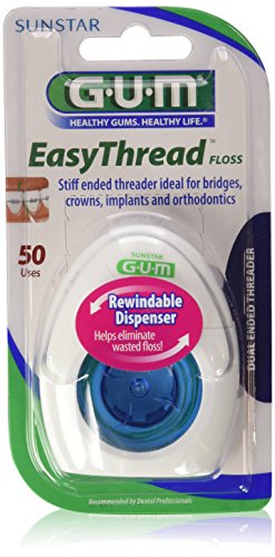 • GUM® EasyThread™ Floss is designed to make flossing around braces, bridges, and implants easy.