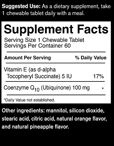 Studio : Food Science of Vermont Publisher : Food Science of Vermont Binding : Health and Beauty Product Description A dietary supplement to support cardiovascular and periodontal functions. CoQ10 is an essential catalyst for the creation of energy at the cellular level. Coenzyme Q10 is an important antioxidant and is recommended to support proper heart, liver, and gum tissue functions. CoQ10 is made naturally in the body, and your cells use it to produce energy your body needs for cell growth and maintenance. CoQ10 deficiency may occur due to disease, low dietary intake, or high CoQ10 use by the body. Symptoms of deficiency can include gum disease, heart failure, high blood pressure, and chest pain. Depending on the cause of deficiency, supplementing with CoQ10 or increasing dietary intake may be effective. CoQ10 chewable tablets from FoodScience of Vermont offer 100 mg of CoQ10 and 5IU of Vitamin E per serving. 0