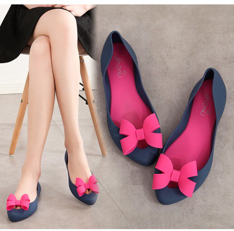 新款蝴蝶结平底果冻鞋女夏凉鞋韩版包头软底套脚沙滩鞋防滑