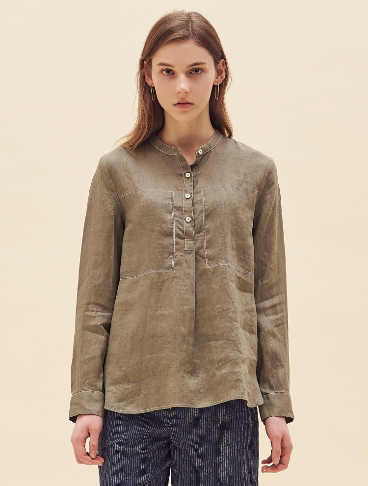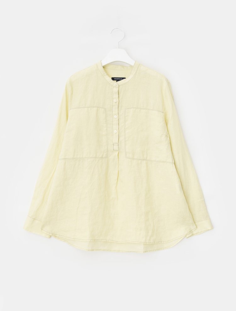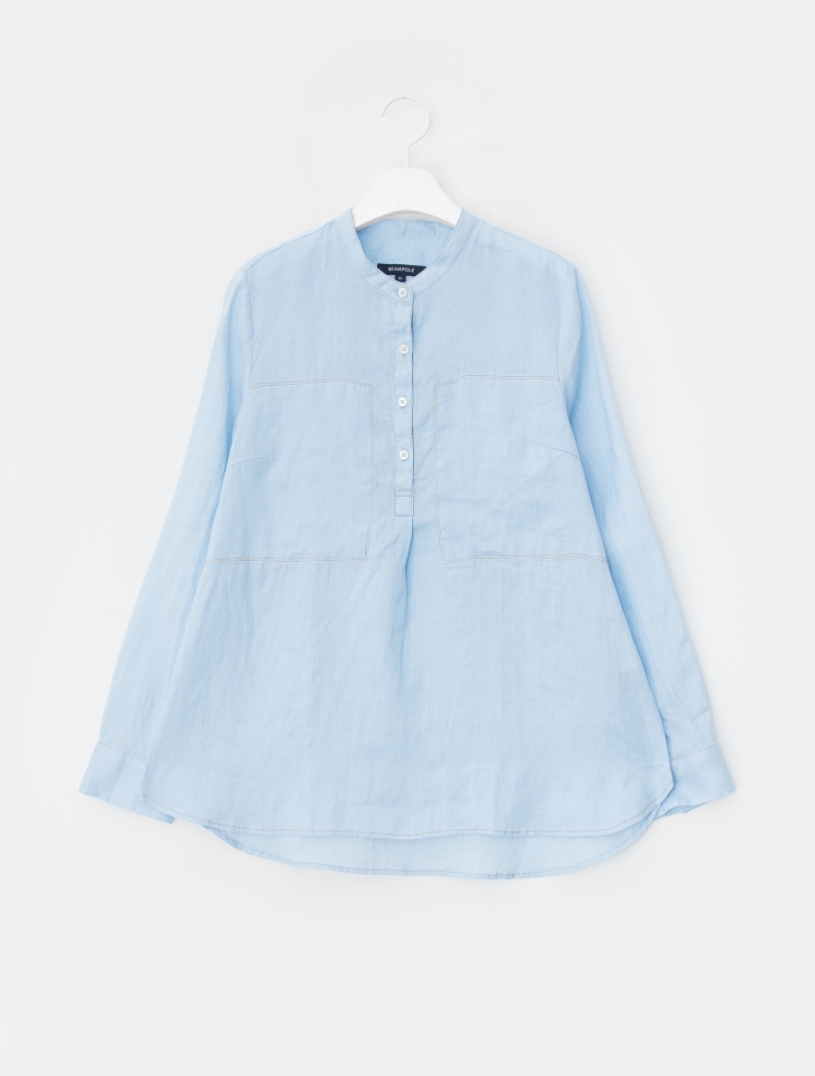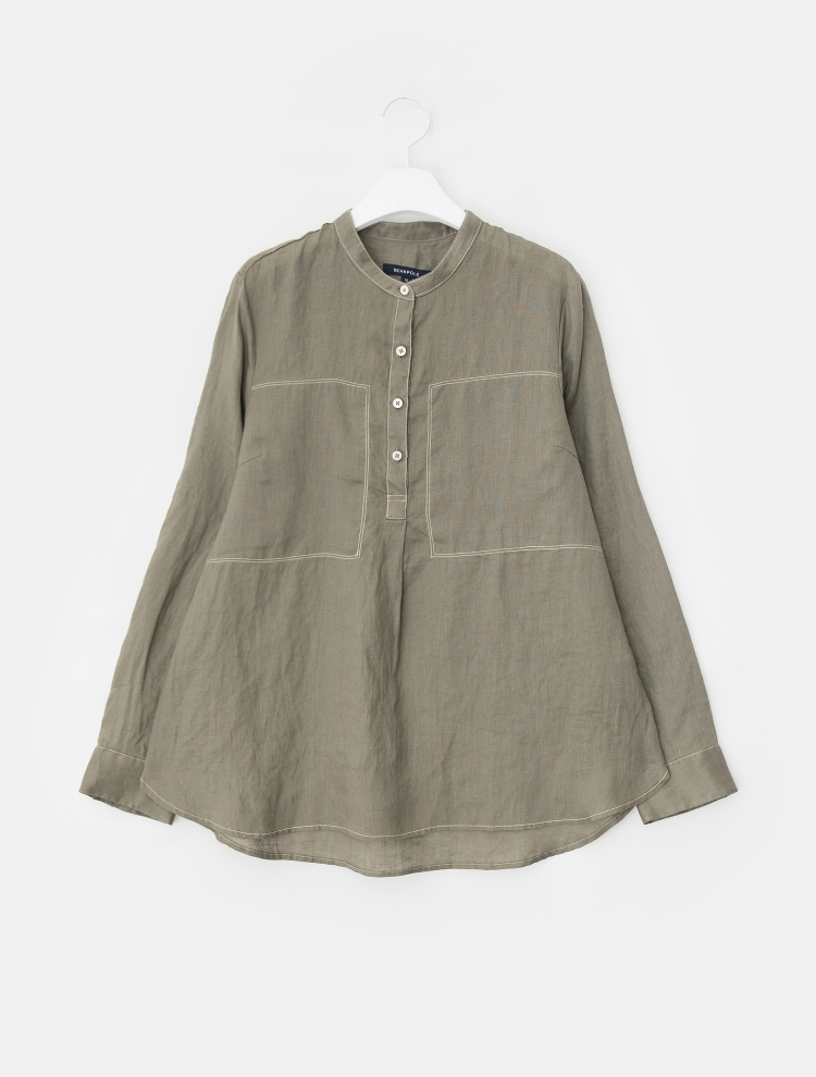 - 배색 스티치로 포인트를 더한 밴드넥의 튜닉 셔츠입니다.