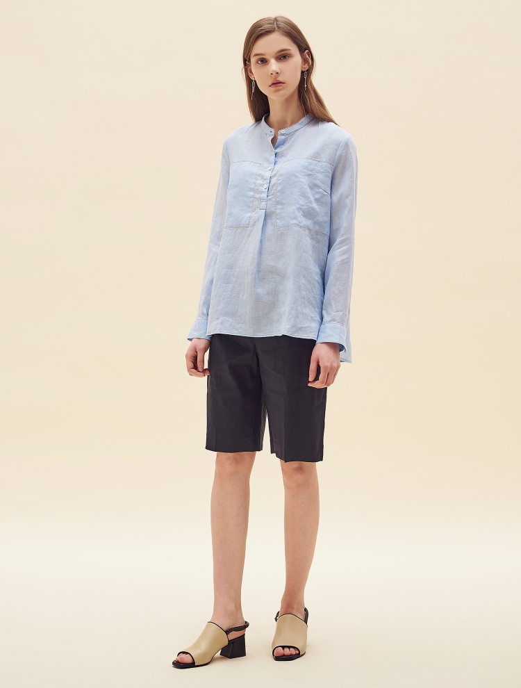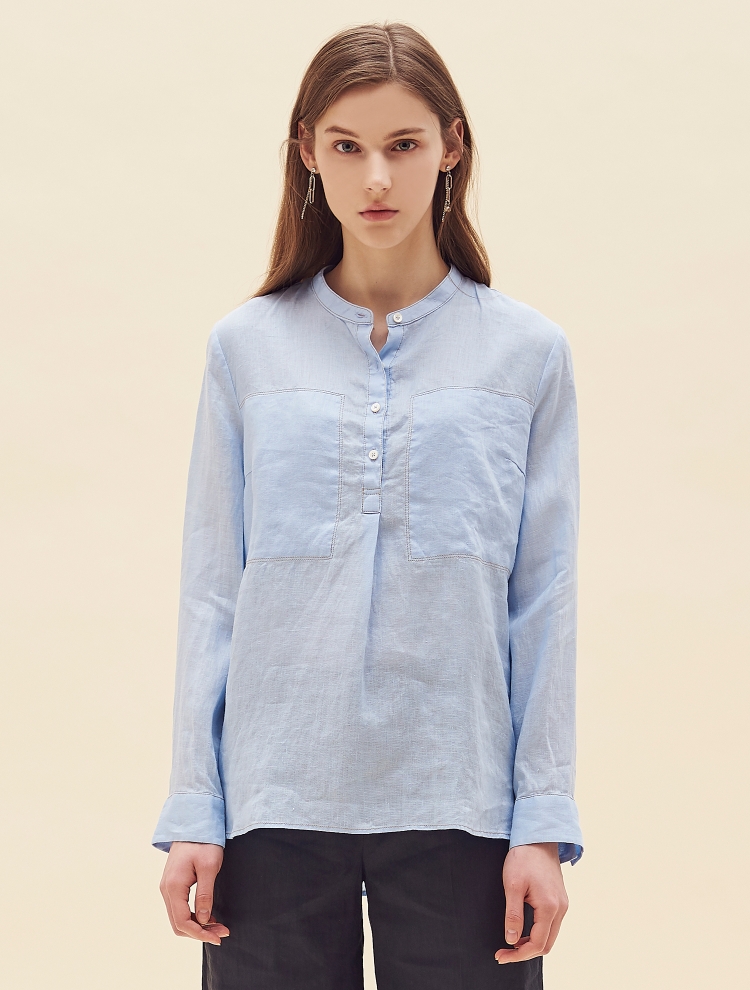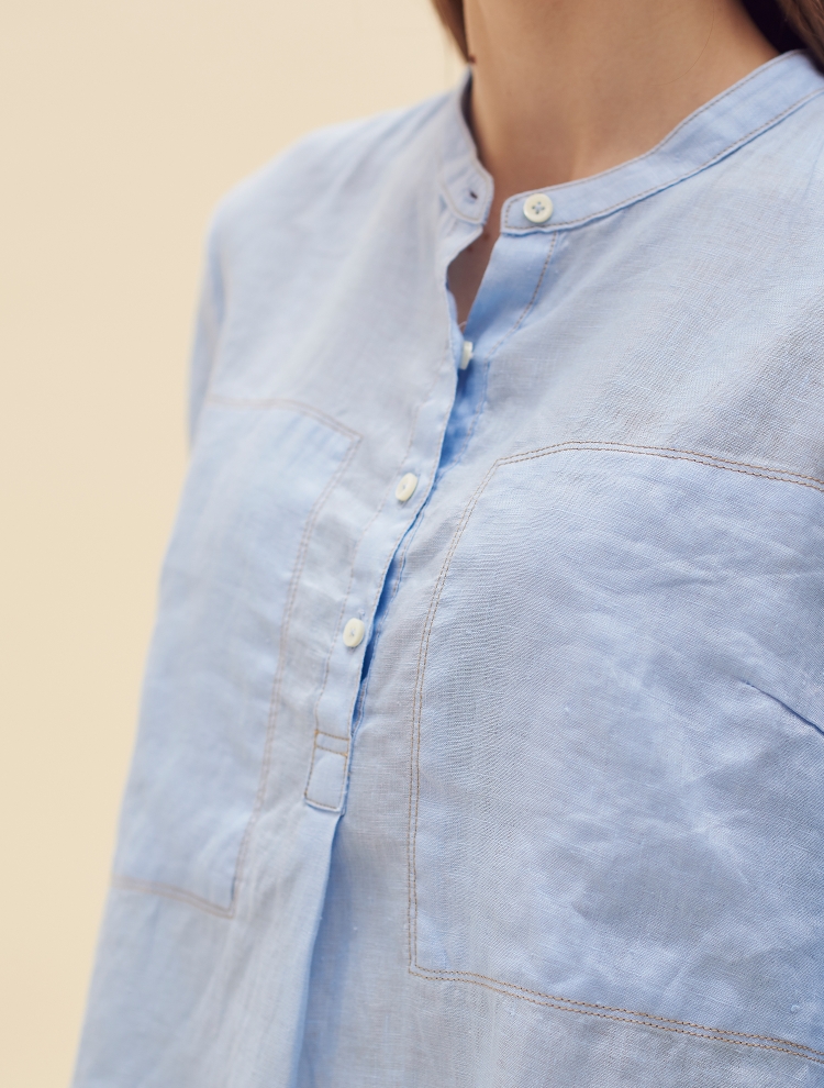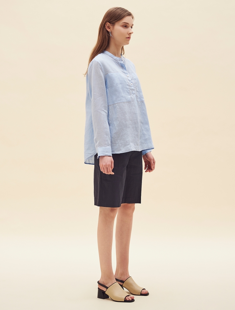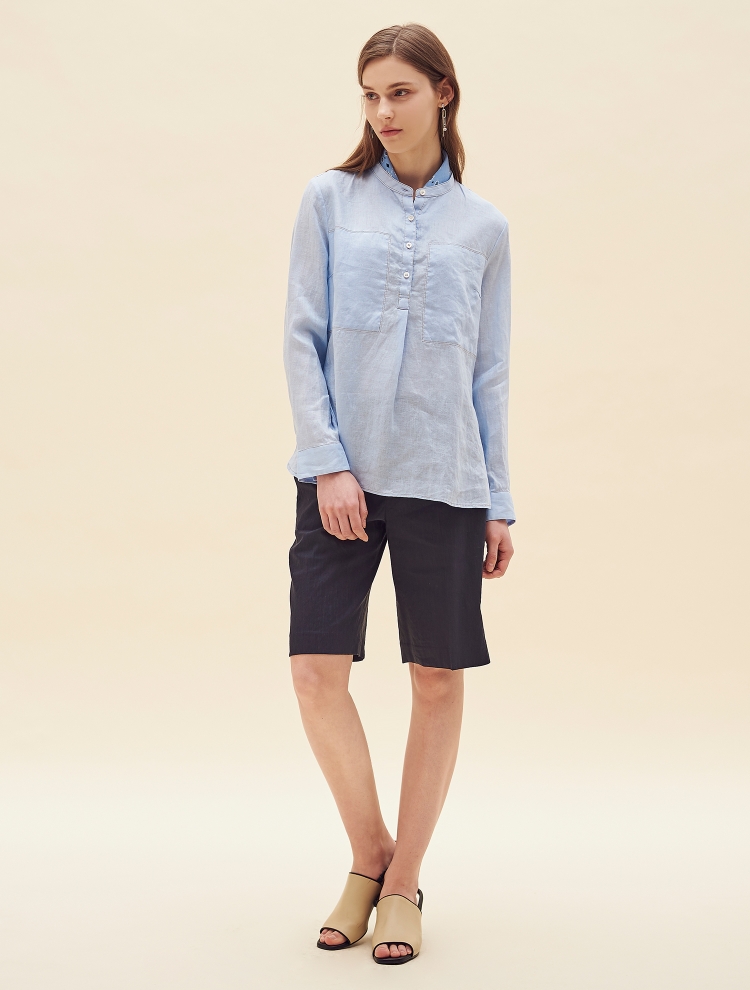 - 배색 스티치로 포인트를 더한 밴드넥의 튜닉 셔츠입니다.