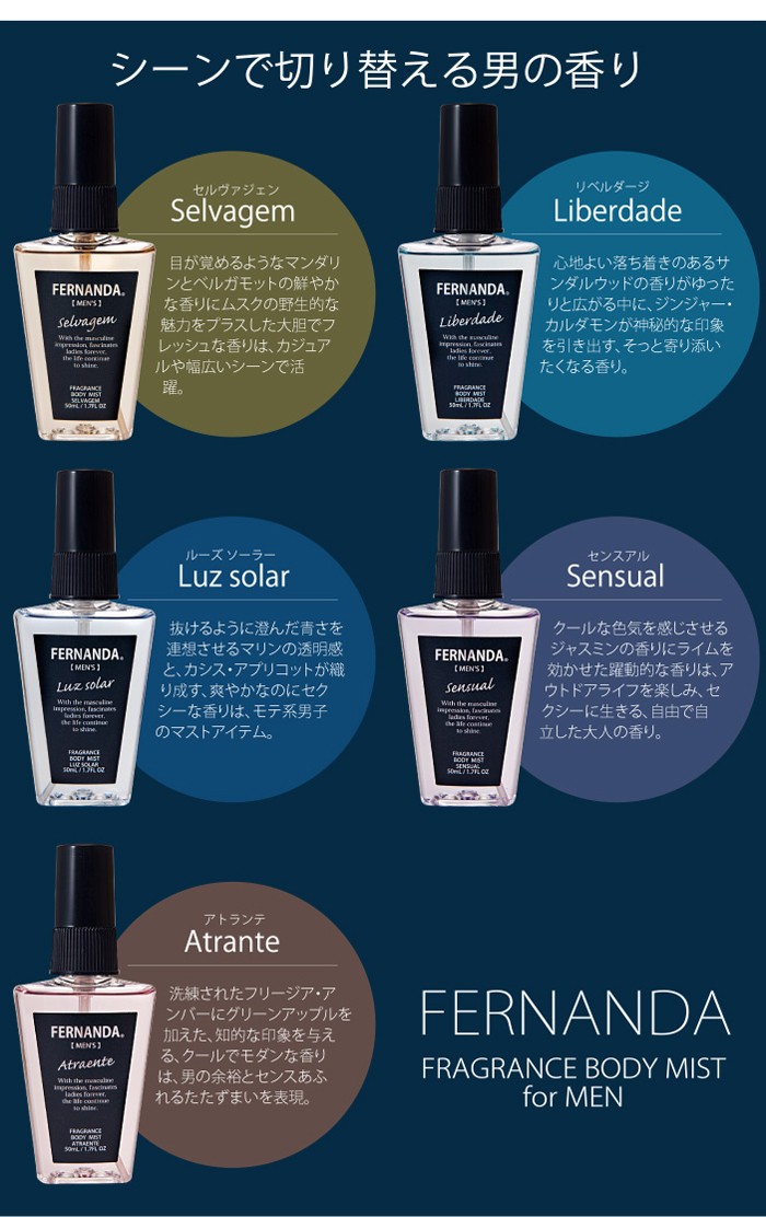 | 商品名 | フェルナンダ フレグランスボディミスト フォーメン セルヴァジェン |
