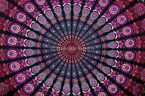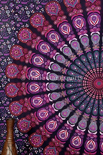 Purple Color Theme Indian Mandala Tapestry Wall Hanging Tightly Loomed Fabric Wall Decor. It is Perfect Piece For Your Home. These Exclusive tapestry is screen printed with beautiful pattern, the fabric is stone washed which gives a wonderful color effect and feel to the fabric. This is a beautiful piece of art at the most reasonable prices and can be used as: Wall Hanging Bedspread Bed Cover Table Cloth Curtain Room Décor Tapestry Picnic Blanket Beach Throw This beautiful tapestry is sure to change the ambience of the room and change even a plain wall into exotic art effect. It is a beautiful piece of art and you can use different pattern and colors of these tapestries to give different effect to your room / wall as per the season. The Printing on this fabric is an example of fine workmanship of Indian artisans, the fabric used is 100% cotton and printing is screen printing. These tapestries are thin sheet of fabric which is very tightly loomed making it a durable fabric. The edges are hemmed.