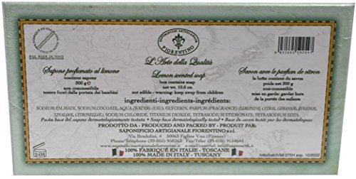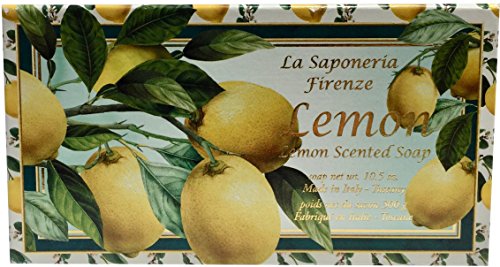 La Saponeria Firenze by Saponificio Artigianale Fiorentino Italian Spa Cleanser Inspired By Florence Made In Tuscany 10.5 Decorative Bar. Fragrant scents. This bar is handmade with no chemical detergents or coloring. This soap bar will leave your skin cleansed, soft, moisturized & pleasantly scented. 100% Made in Italy in scenic Italy inspired decorative box.Feature