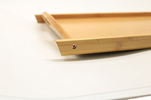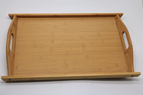 This works works great as a breakfast tray, serving platter, bed tray, or just for decor. Made of high quality, environmentally-friendly bamboo construction with integrated handles for easy lifting and carrying. Serve and entertain guests with this decorative, luxury tray. Deep enough to put a drink on, and not worry about spilling while transporting up stairs or on a bed. 0