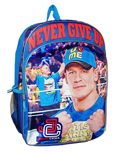-. Brand : World Wrestling Entertainment -. Color : Blue -. Department : boys -. EAN : 0843340127576 -. Feature : Full-size backpack perfect for school or travel! -. ProductGroup : Apparel -. ProductTypeName : LAGE -. Size : One Size Fits Most Children 6 & Up -. Title : JOHN CENA WWE WRESTLING SUPERSTAR 16" Full-Size School Backpack -. UPC : 843340127576