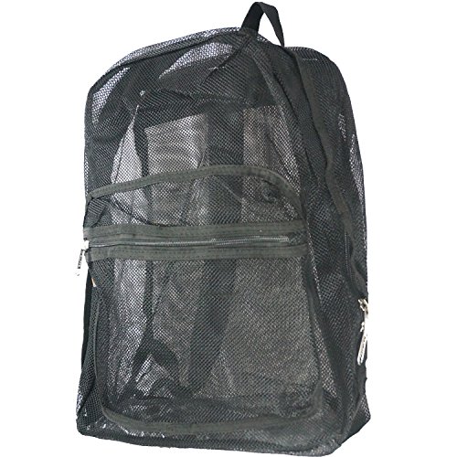 -. Binding : Apparel -. Brand : K-Cliffs -. Department : unisex-adult -. Feature : * A main compartments with double zipper, / * A zipper front pocket, / * Clear PVC reinforcement on bottom, / * Adjustable and padded shoulder straps, / * A handle for easy carrying -. ProductGroup : Apparel -. ProductTypeName : BAG -. Title : Mesh Backpack See through Student School Bag Bookbag Mesh Net Daypack