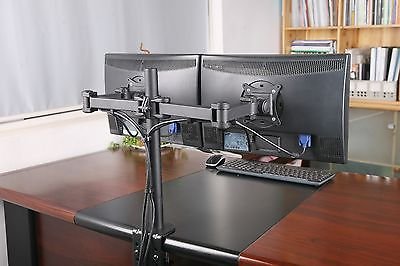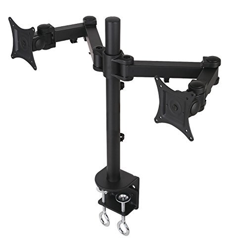 -. Binding : Office Product -. Brand : NYCCO -. EAN : 0654367480892 -. Feature : WIDESPREAD COMPATIBILITY: Robust design holds two 27" LCD wide screen monitors up to 22 Lbs each / FULL ARTICULATION: 360 degrees of swivel and rotation and -15 to +15 tilt adjustment provide endless ergonomic and space saving possibilities / NEAT APPEARANCE: Neat and easy installation with the integrated cable management system / SECURE MOUNTING: Powerful clamps anchor your mount securely to the desktop using either the included C Clamp or a grommet clamp for through desktop mounting / EASYY INSTALLATION: fits monitors with 75 x 75 mm and 100 x 100 mm mounting patterns most monitors that have mounting holes use these configurations). Includes detachable VESA bracket plates for an easy install -. Label : NYCCO -. Manufacturer : NYCCO -. Model : NYCCO253D -. MPN : NYCCO253D -. PackageQuantity : 1 -. PartNumber : NYCCO253D -. ProductGroup : Office Product -. ProductTypeName : OFFICE_PRODUCTS -. Publisher : NYCCO -. Studio : NYCCO -. Title : Heavy Duty Dual Monitor Desk Mount Fully Adjustable fits 2 Screens up to 27" - VESA Mount -. UPC : 654367480892