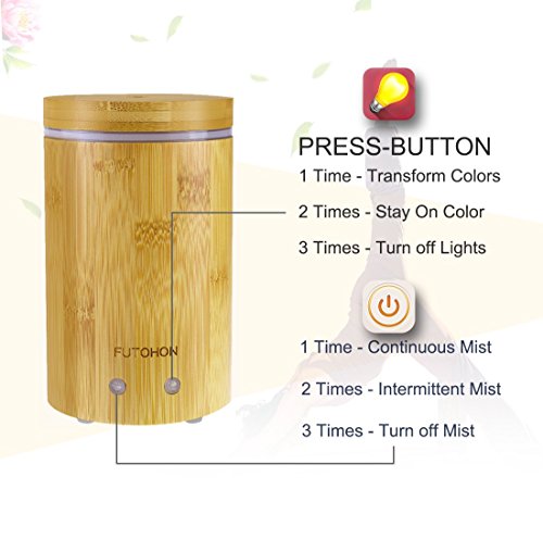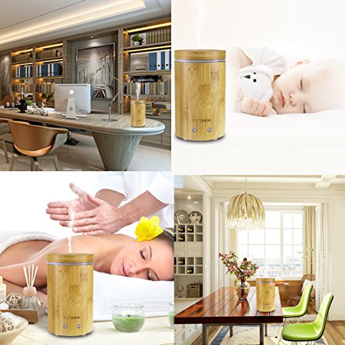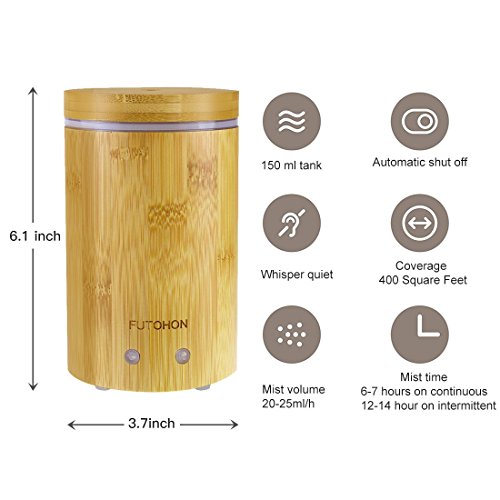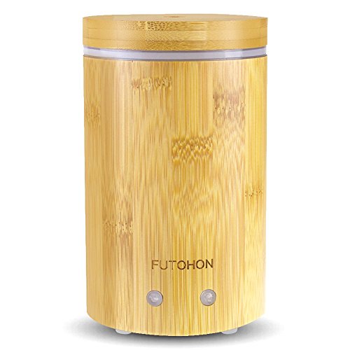 FUTOHON Bamboo Diffuser Cool Mist Humidifier 150 ml, Auto Shut-off Aroma Oil Diffuser, 7 LED Lights Control,Up To 7H Use,BPA Free