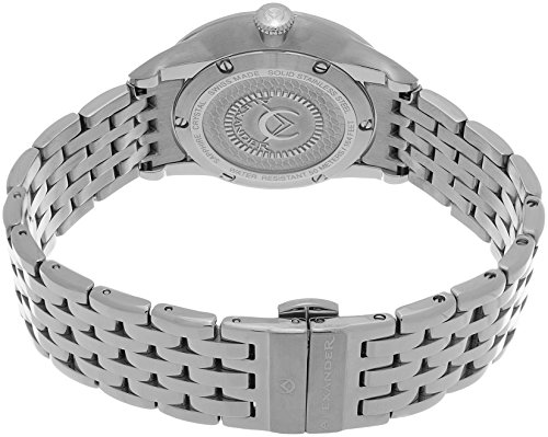 -. Feature : Brand new and authentic wristwatch with brushed and polished 316L surgical grade stainless steel round case (40 mm in diameter, 9.5 mm thick), Screw-in case-back with embossed classic Alexander logo / Black sunburst face with the Alexander logo above center, Silver-tone hands, White center seconds hand, Applied silver-tone indices with P.R.Inted white indices / Calendar date window displayed at the 3 o'clock position, Scratch resistant sapphire crystal / Swiss quartz movement, Ronda calibre 715 / Water resistant to 5 ATM/50 meters/165 feet, Polished stainless steel band, Push button deployment clasp