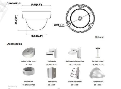 -. Title : Hikvision 8 MP Network Dome Camera DS-2CD2185FWD-IS 4mm fixed lens H.265+ English Retail Version Home Security Surveillance Camera