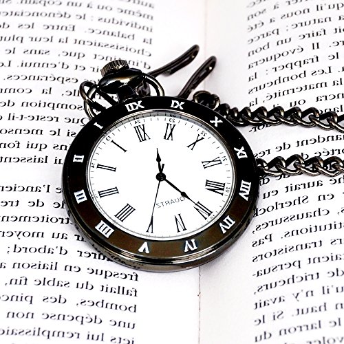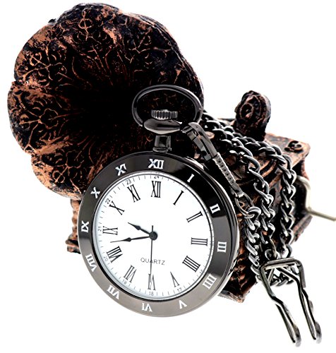 -. Feature : Classic roman numerals vintage pocket watch design case, black pocket watch with chain / High quality gives you a new classic definition. / Best gift to your lover, Partner, family, friends, classmates, colleagues Xmas gift / Japanes quartz movement pocket watch. / Comes with pocket watch gift box + Chains