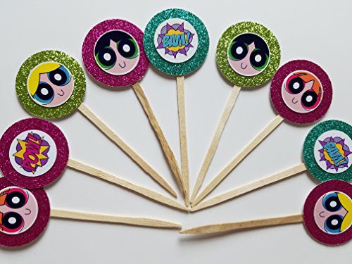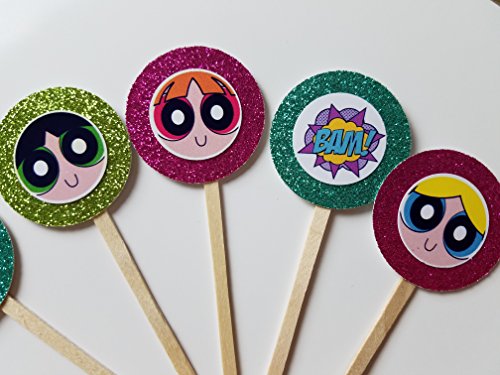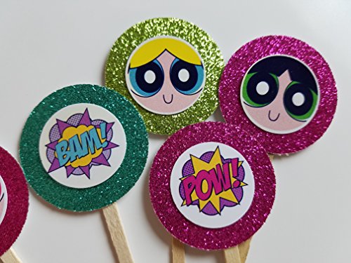 8 PowerPuff Girls Cupcake Toppers Girl Boy PPG power puff Super Hero Comic Book Bam Zap Birthday Party