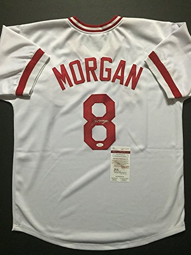 Autographed/Signed Joe Morgan Cincinnati Reds White Baseball Jersey JSA COA