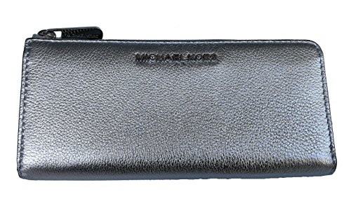 Michael Kors Bedford Large Three Quarter Zip Around Pebbled Leather Wallet (Silver)