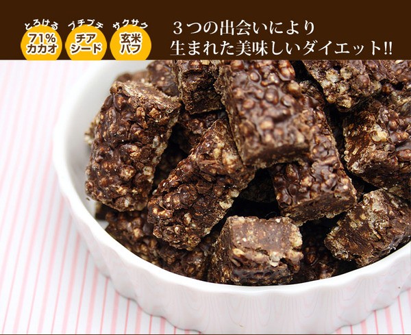 カカオマス、玄米パフ、砂糖、チアシード、乳化剤、香料