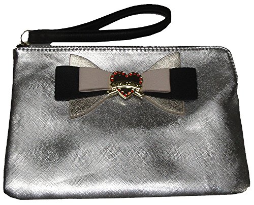 -. Title : Betsey Johnson Women's Large "Saffiano" Wristlet, Silver