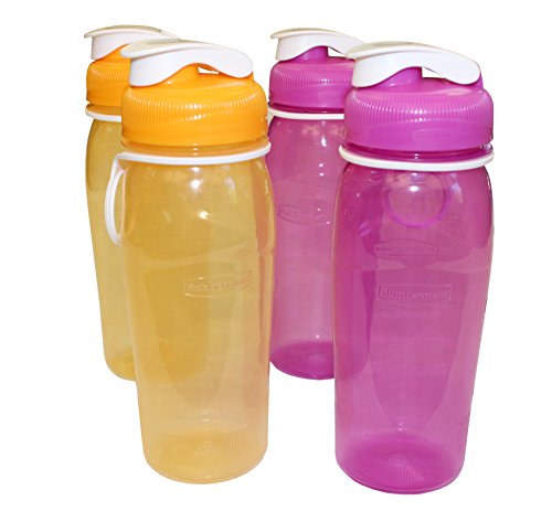 The Rubbermaid 1787306 refill, reuse 20 -ounce chug bottle. 2-Passion Fruit, 2-Clementine Colors, gives you a bottle for everyone in your family, or one for multiple locations like your home and office. The bottles were designed with your life style in mind. A finger loop allows for easier carrying and frees up your hands to carry other necessities. A leak-proof lid seal reduces spills. The bottles fit in standard-cup holders so you can take them on the go. Plus, the bottles are bpa free and dishwasher and freezer safe.Feature