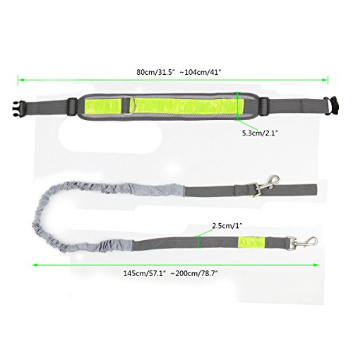 Product Features: Material: Nylon Color: Gray Waist: 31-41 inches (80-104cm) Belt Width: 2 inches (5cm) Leash Length: 57-78 inches (145cm-200cm) Zipper Bag Size: 10cm x 5cm x 13cm/3.5 x 1.8 x 4.7inch (L x W x H) Bottle Holder Bag Dimension: 8 x 11cm/3x4.5inch (Diameter x Height) Application: for Running Walking Hiking Adjustable waist belt and elastic dog leash Come with botttle holder bag and zipper bag Reflective strip on waist belt to keep running safe in the night Hands-free, suitable for running, walking, hiking, etc. Package Content: 1 x Reflective Waist Belt ; 1 x Elastic Dog Leash ; 1 x Zipper Bag; 1 x Bottle Holder Bag;