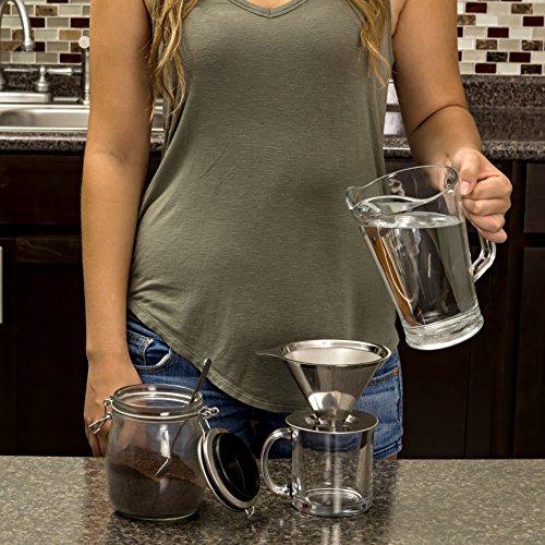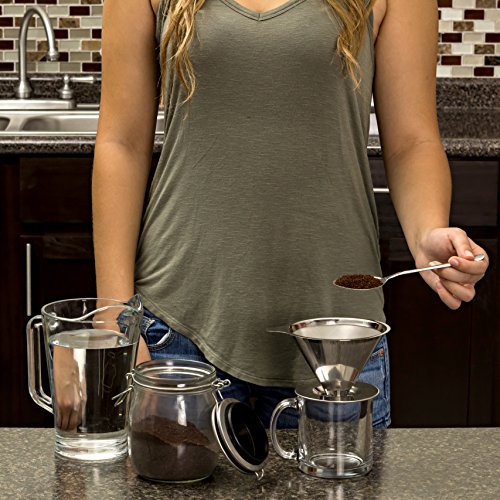 -. Brand : HouseBasicsTM -. Color : Silver -. EAN : 0750253293338 -. Feature : DO YOU LOVE COFFEE AS MUCH AS WE DO? ==> The Pour Over Coffee Maker by HouseBasics as a 18/8 Stainless Steel Coffee Dripper will not absorb any nutrients or oils from your perfect cup of coffee. / BREW LIKE A BARISTA ==> Easiest of 1 cup coffee makers allows for a Quick and Easy cup of coffee. Clean with a Rinse and is Dishwasher Safe. / PLANET-LOVING AND ECO-FRIENDLY ==> Paperless and Reusable Siphon Coffee Maker, the 1400 Micro Mesh Filter will allow you to use the Grind and Strength of Coffee you like. / ONE WORD: PERFECTION! ==> There is No Better Way to Control the Strength and Flavor of your Coffee. / MONEY-BACK GUARANTEE ==> HouseBasics Offers a Two-Year Warranty and a Money-Back Guarantee so You Can Purchase with Confidence. -. Model : 5128300 -. MPN : 5128300 -. PartNumber : 5128300 -. ProductGroup : Kitchen -. ProductTypeName : KITCHEN -. Title : One Cup Coffee Maker by HouseBasics, Pour Over Coffee Dripper made with Stainless Steel Micro Mesh, Filterless, Reusable -. UPC : 750253293338