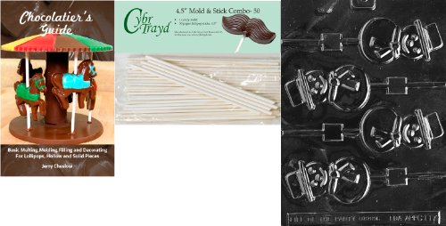 Cybrtrayd 'Smiling Snowman Lolly' Christmas Chocolate Candy Mold with 50 4.5-Inch Lollipop Sticks and Chocolatier's Guide