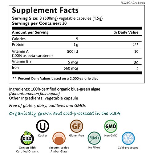 -. Feature : 100% Organic Blue-Green Algae grown in mountain sP.R.Ing-fed Upper Klamath Lake / Harvested at one special time of year, at its peak of bloom / Triple-filtered, cold-processed, and independently tested and verified / Contains antioxidant-rich carotenoids, bioavailable vegan protein, & detoxifying chlorophyll / Supports your energy, stamina, and overall well-being