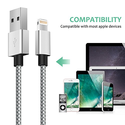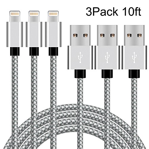 Aokesi 3 Pack 10ft Lightning Cable Extra Long Nylon Braided Durable USB Sync and Charging Cord for Apple iPhone 7/7 Plus/6s/6s Plus/6/6 Plus/5s/5/se, iPad Pro, iPad Air, iPad Mini (Silver Gray)