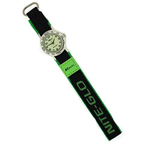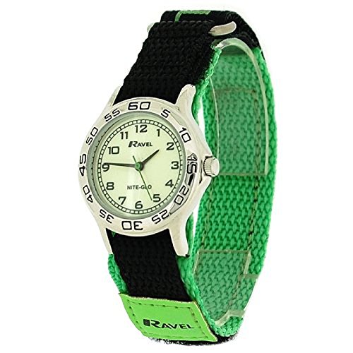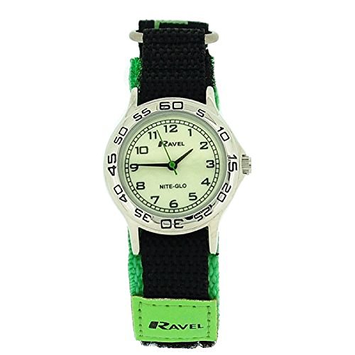 -. Title : Ravel Nite-Glo Quartz Luminous Dial Green & Black Velcro Boys Watch R1708.11