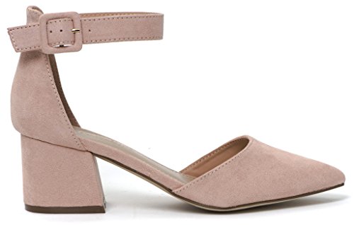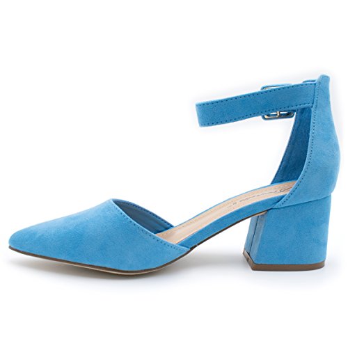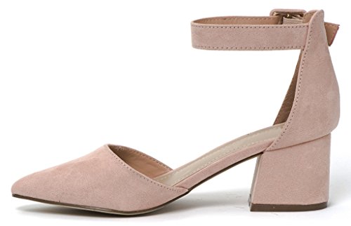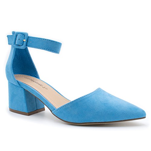 Breckelle's Women's Pointed Toe Ankle Strap Block Heel Pump