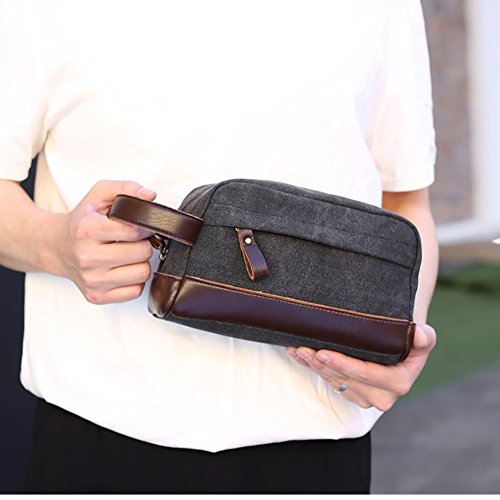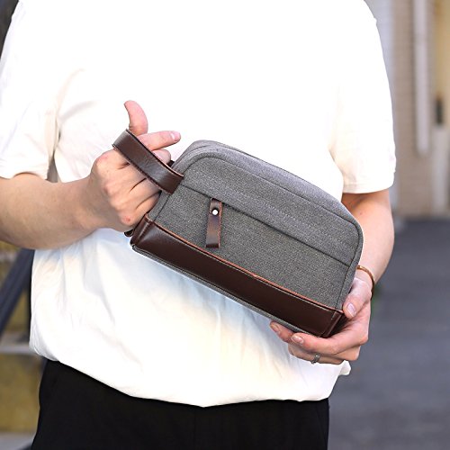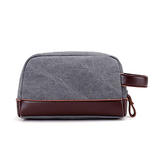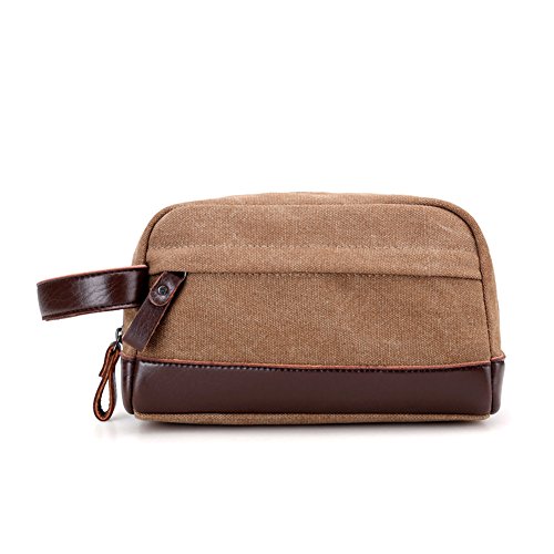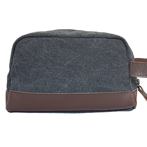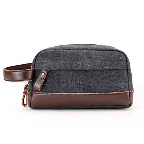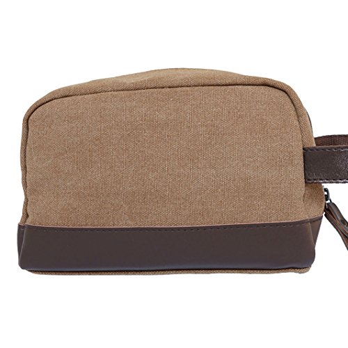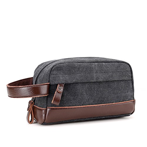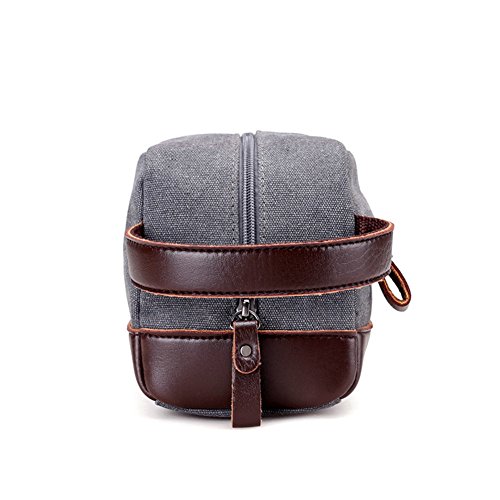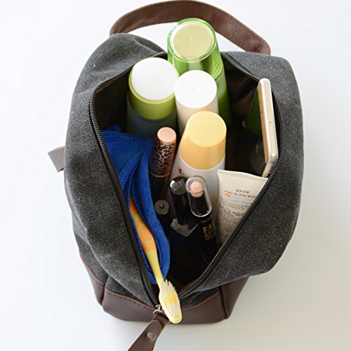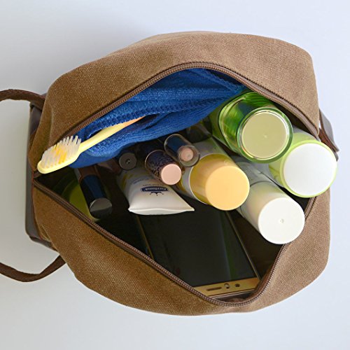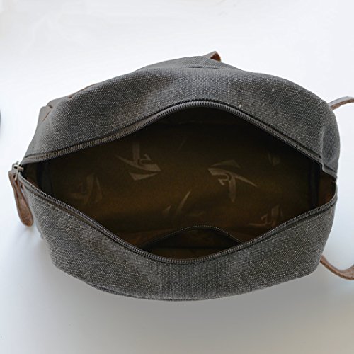 Toupons Toiletry Organizer Bag for Men Canvas Dopp Kits Shaving Kit Travel Accessories Bag Structure - Interior: One zipper pocket - Closure Type: Zipper - Gender: Men - Style: Fashion - Main Material: Canvas - Lining: Polyester Cotton - Net Weight: 0.4 lb Features - Airplane carry-on approved. With this durable travel toiletry bag will keep the TSA away from bugging you - High Quality Shaving Dopp Kit, made of 16oz canvas, Eco-friendly. And decorated with high quality leather. A Handle For Easy Carrying. Thick Large Zipper makes it easy to zip and unzip - Size: 9 Inch L X 4.7 Inch W X 5.1 Inch H, easily fits into a backpack or suitcase for gym or travel - One main compartment, a small inside zipper pouch and a outside zipper pocket help you put shaving cream, knives, bottles, toothbrush, floss, tie clip and other small items. Please noted that it's a small Toiletry Organizer Bag for short trips Other Applications of this bag - Safely stashing camera accessories, lenses, cables and cards - Perfect for students to used it as a Pen Pencil Stationery Pouch Bag - Ideal to use it as a coin purse - Electronics Accessories Travel Organizer Package includes: - 1 * Bag ONLY Return Policy: All Toupons bags enjoy 1 year warranty and 30 days free return for no reason. Purchasing Notes: - The actual colour of the bag maybe different from the picture shown due to the different screen of display or reflecting light when shooting. - 1-2cm error of measuring is a reasonable range due to different measurement methods. 0
