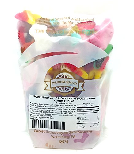 -. Feature : Assortment of Gummy Cow, Gummy Pigs, Gummy Corn, Gummy Berries, Gummy Pumpkins, Gummy Chicken Feet, Gummy Butterflies, Gummi Eggs. / Special summer gummy mix from SweetGourmet / Farm candy! They make the perfect hostess gift for farm themed events and parties.