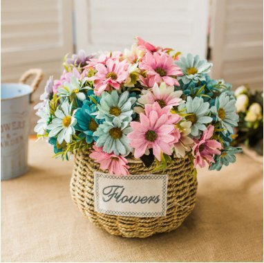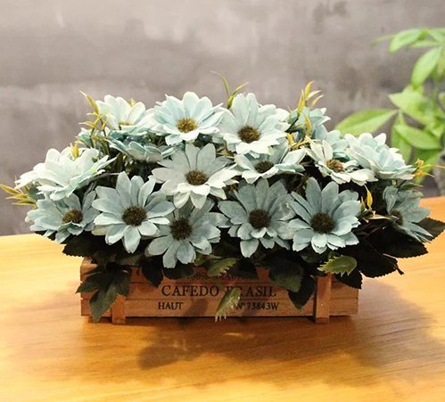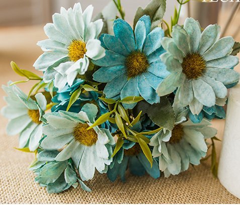 Artificial Silk Daisy Bouquets for Home and Wedding Decorations 2 Bunches (blue)