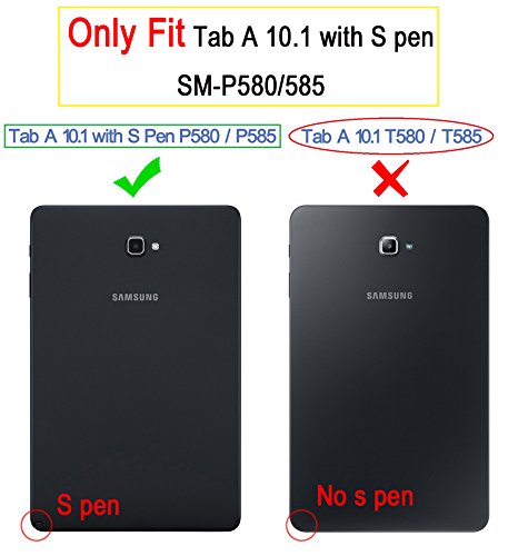 Specifically designed cutouts for Samsung Galaxy Tab A 10.1 with S pen Tablet, Only fit Samsung Galaxy Tab A 10.1 with S pen P580 / 585 Tablet,does not fit for Tab A 10.1 T580 /585 no s pen tablet