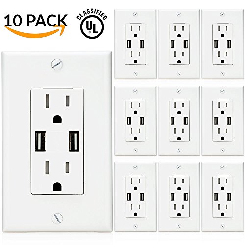 Sunco Lighting 10 PACK - UL Listed- High Speed USB Port Charger and Duplex Receptacle 15-Amp, 3.1A Charging Capability, Tamper Resistant Outlet- Wall-plate Included