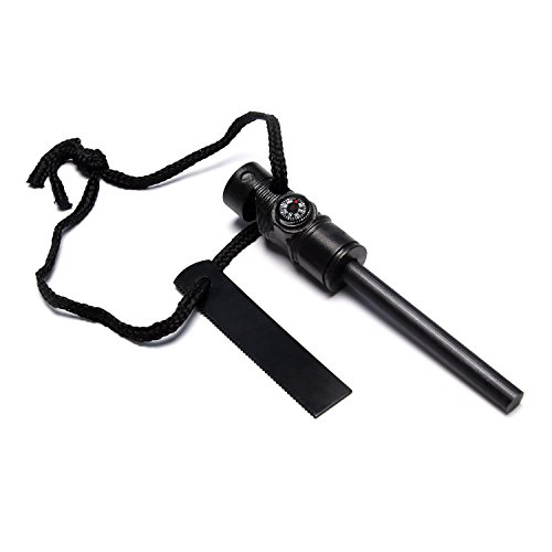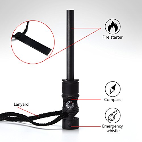 MULTIFUNCTION: This is an all-in-one toolkit with four helpful software programs in one place, fire starter stick, large scraper, compass, whistle & lanyard. It’s often no cell phone reception in the woods or outdoor. Therefore, It’s convenient for you to use this whistle to let others notice the emergency or use compass to show your way.raper, compass, whistle & lanyard
