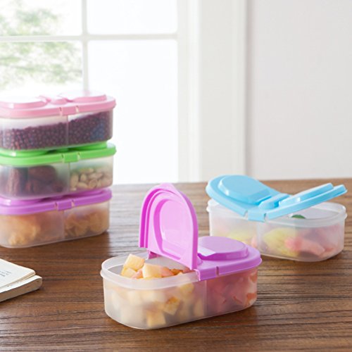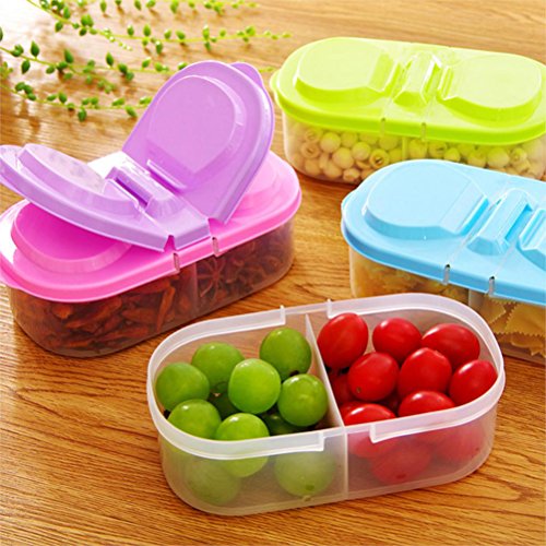 OUNONA 4pcs 2 Grid Reusable Plastic Food Storage Containers with Lids,Refrigerator Crisper Box Fresh Fruit Snacks Storage Box(Color random)