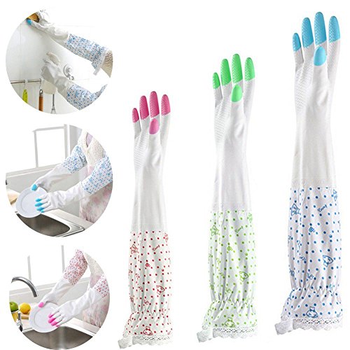 -. Title : NetBoat 3 Pair Waterproof Rubber Latex Cleaning Gloves for Kitchen Dish Washing Laundry Cleaning (Medium, 3 bright finger colors)
